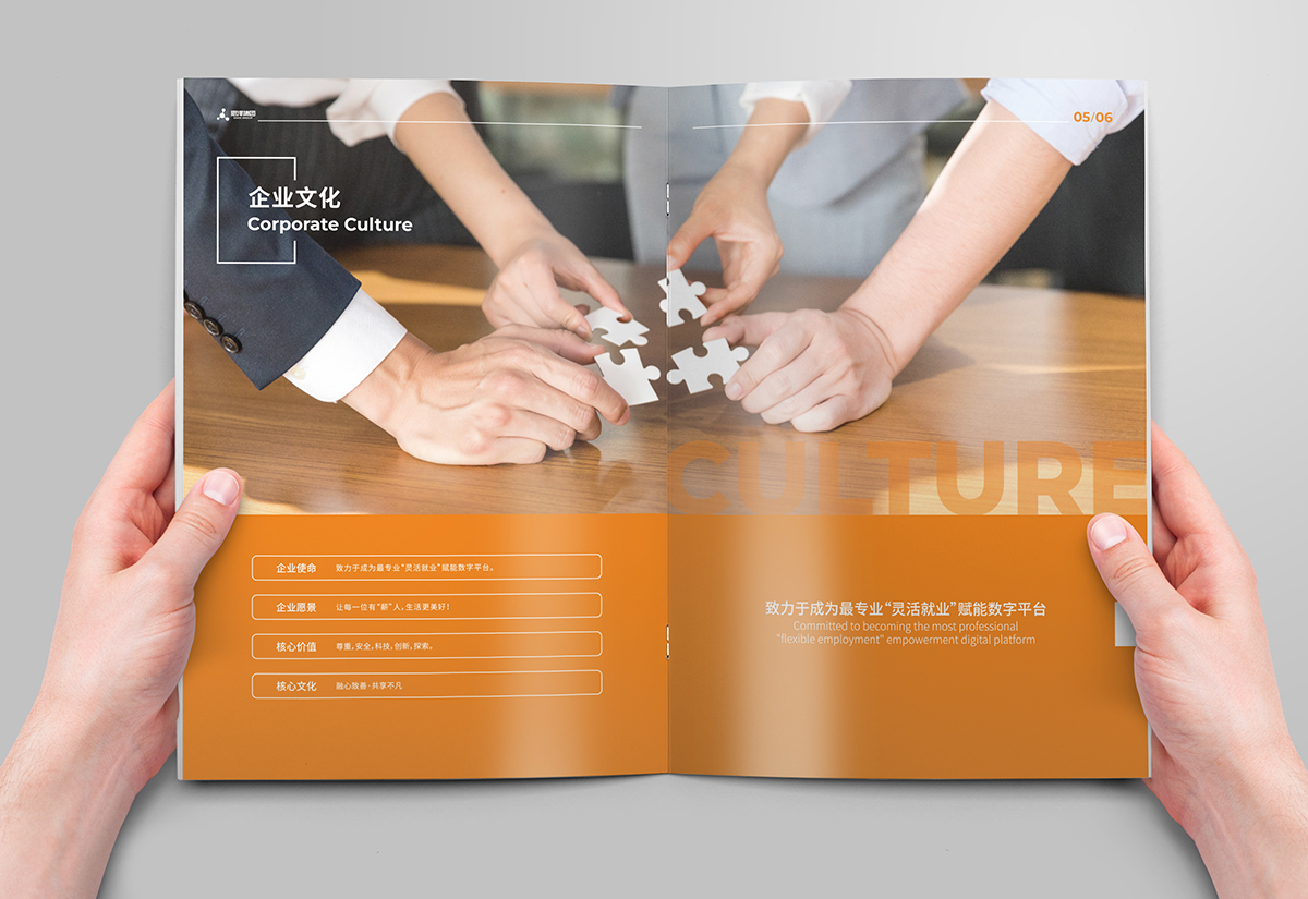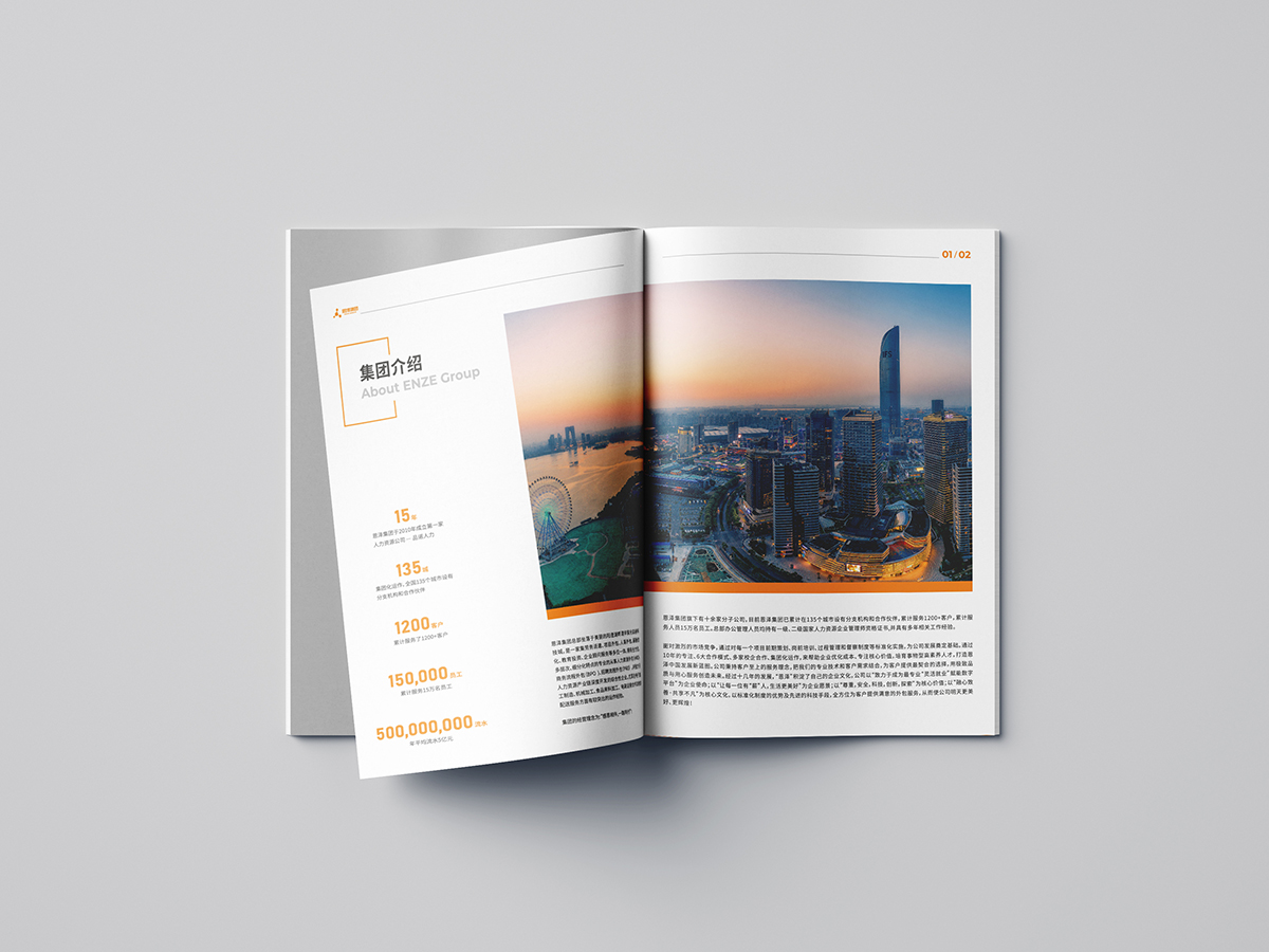 蘇州極地視覺廣告設計公司專業(yè)畫冊設計,品牌vi設計,專業(yè)宣傳冊設計,logo設計,包裝設計等品牌策劃設計,1000+客戶案例,50家集團公司案例,文化沉淀,值得信賴恩澤數(shù)字產(chǎn)業(yè)集團畫冊采用橙色風格,畫冊設計是企業(yè)傳播的重要途徑之一,畫冊的創(chuàng)意性相當重要,宣傳冊設計要考慮整個品牌的調(diào)性及產(chǎn)品緊密結(jié)合,從品牌logo的結(jié)構及標準色、板式設計到后期印刷工藝都要考慮進去。