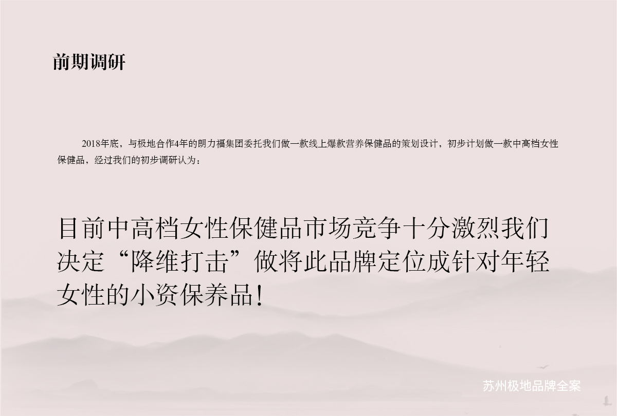 品牌介紹:朗力福集團之桃花劫品牌LOGO設計及包裝設計系列,桃花寓意幸運長壽、健康容美,好產品+極地視覺+好營銷就無敵了,考慮到是女性的保健品,整體風格設計的比較柔美、愜意。包裝設計分為2個系列固原糕燕窩阿膠、蛋白鈦粉燕窩膠原,極地視覺 - 高端原創品牌策劃設計 立足蘇州 服務全球。