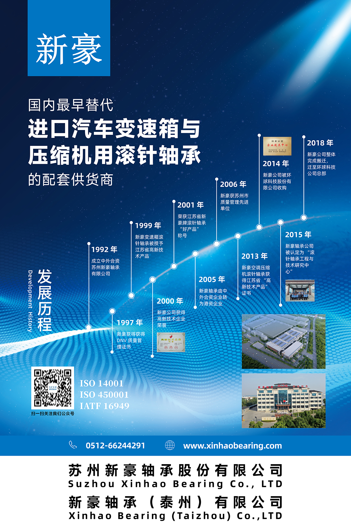 蘇州新豪軸承股份有限公司于1992年成立,位于蘇州市吳中區胥口鎮石中路188號,是蘇州環球科技股份有限公司的全資子公司,是江蘇省技術廳認定的高新技術企業,先后獲得“江蘇省橋車變速箱滾針軸承高新技術產品”與“與江蘇省汽車空調壓縮機滾針軸承高新技術產品”的認定。擁有各項專利30多項,公司現有員工110多人,廠房建筑面積18萬平方米,95%以上為OEM客戶。新豪2023年擁有10多長展會,極地視覺簽訂包年框架協議,為新豪展會海報設計,logo設計,宣傳畫冊設計,展覽展廳設計裝修,提供全方位的品牌設計服務。