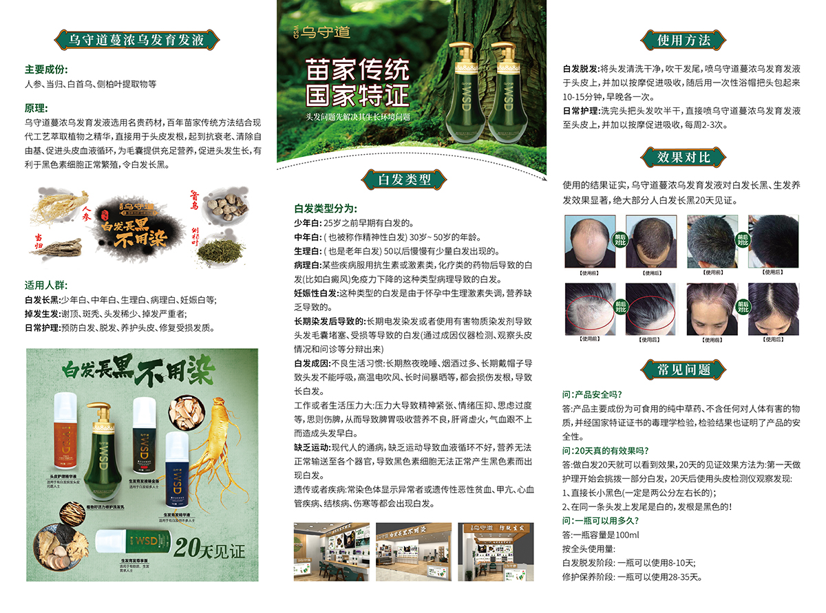 養發護發美容三折頁設計-烏守道養發生發 | 蘇州包裝設計 VI設計-極地視覺具有國際視覺的優質品牌設計公司