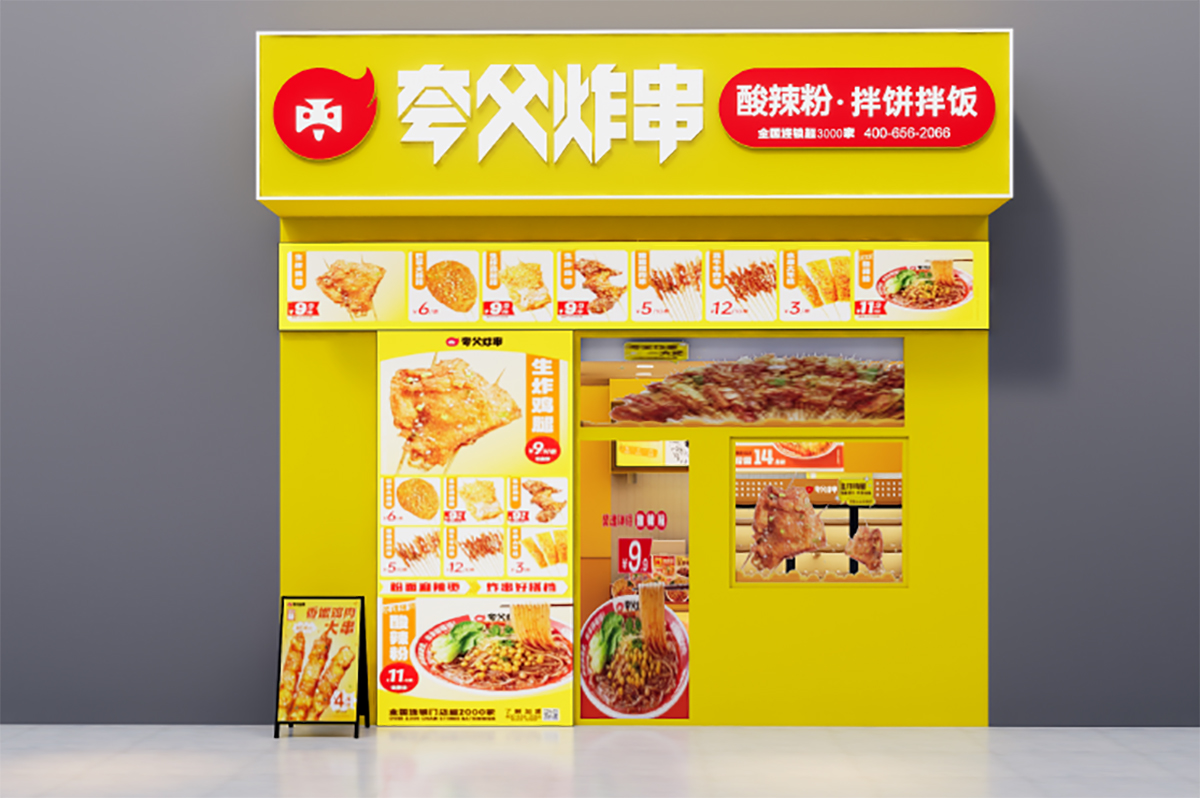 餐飲小吃連鎖店面廣告制作安裝|夸父炸串|餐飲連鎖店面設(shè)計(jì)-極地視覺品牌設(shè)計(jì)公司