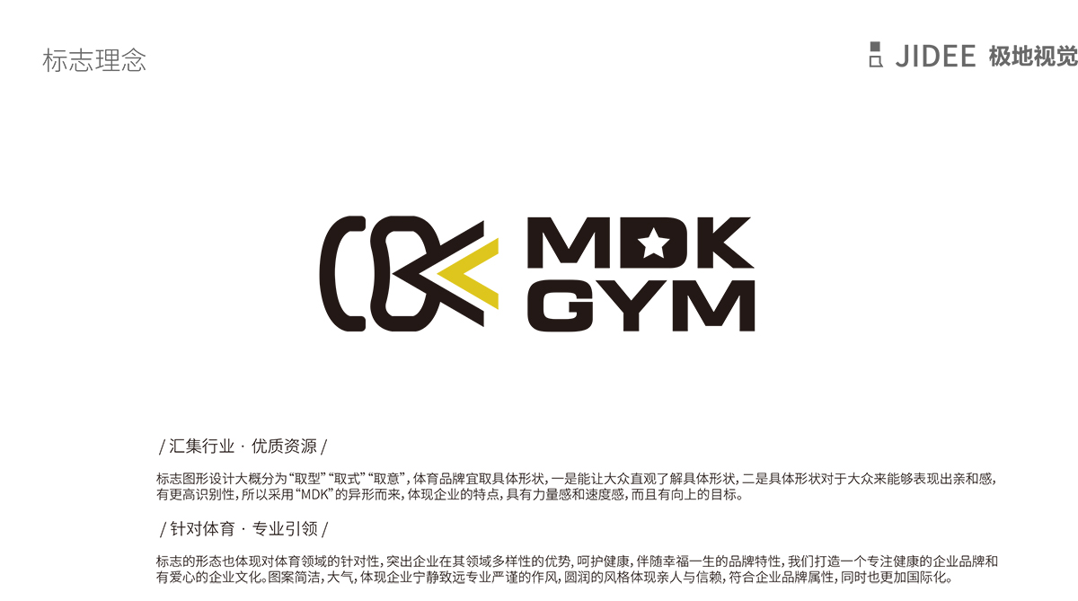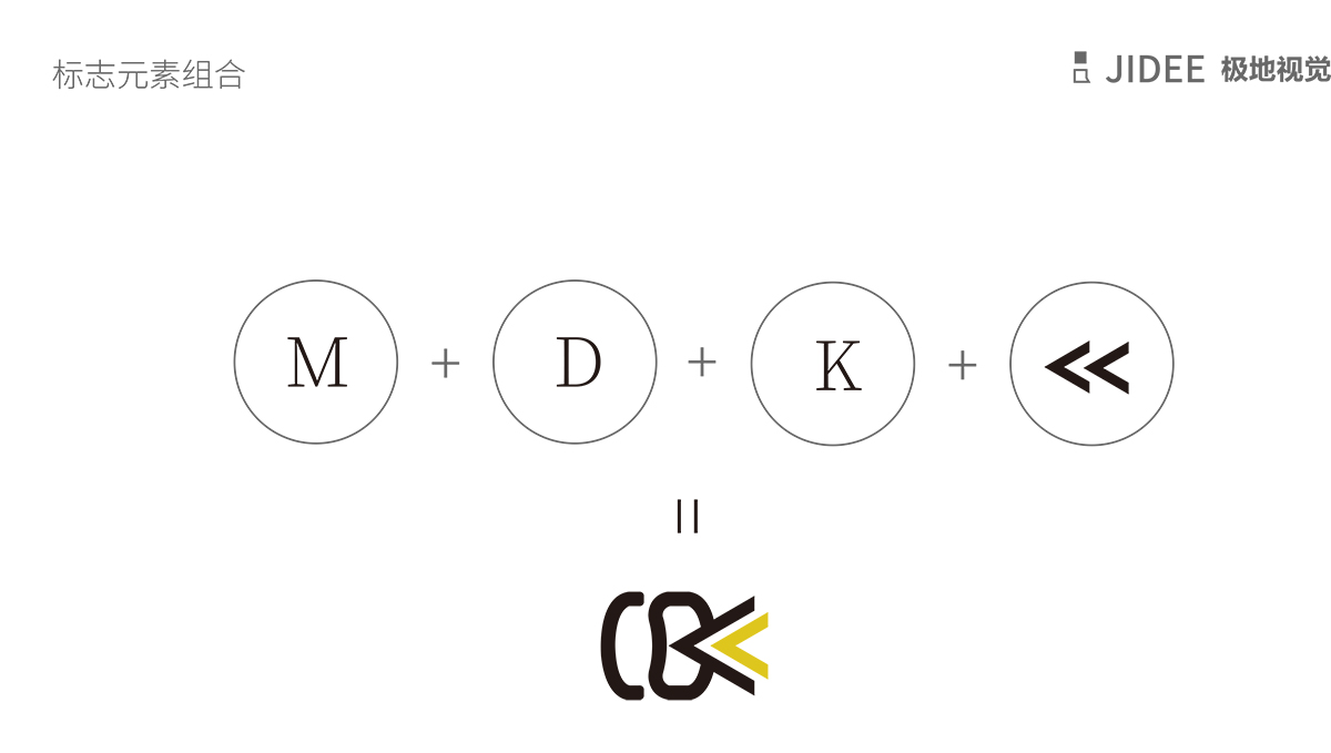 有更高識別性,所以采用“MDK”的異形而來,體現企業的特點,具有力量感和速度感,而且有向上的目標。