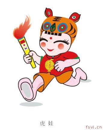 吉祥物“虎娃”是一位身穿中國傳統服飾的小姑娘手持火炬飛奔而來,祝賀本屆運動會的成功舉辦。吉祥物采用布老虎、唐裝等造型紋樣,極具中國傳統文化特色,布老虎形象也是濰坊民間美術文化的代表之一。虎娃跑步姿態協調而充滿動感,充分顯示了運動的魅力;彎彎的眼睛、紅紅的嘴唇和臉龐的胭脂形成一張甜美的笑臉,喜迎八方賓客。吉祥物虎娃形象喜慶、色彩熱烈、動態和諧,充分展示了濰坊人民迎接中日韓青少年運動員的熱情。