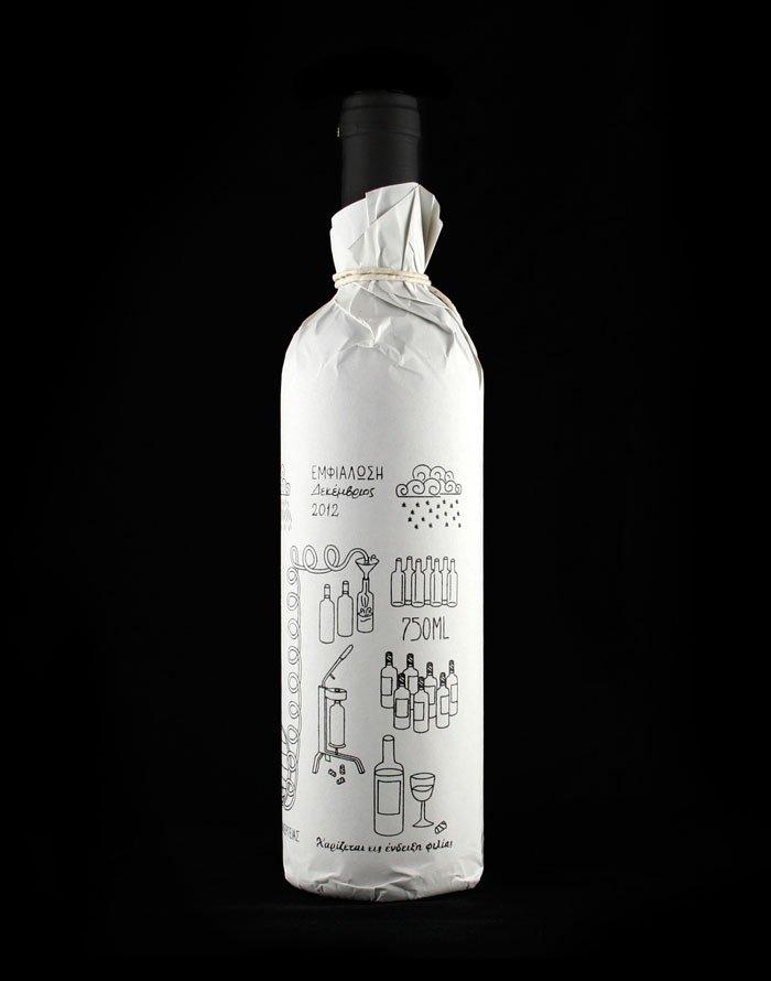 用涂鴉和絲印來賦予酒瓶的包裝一種手作的感覺,因為這是一瓶家庭手工制作的酒,希臘的設計師Zafeiriadis Christos設計。