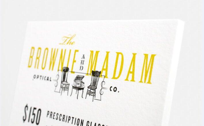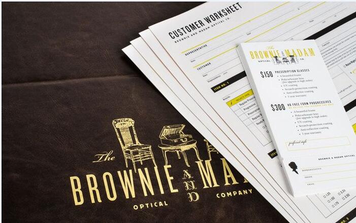布朗尼女士眼鏡公司(The Brownie and Madam Optical Company)正如其名稱所暗示的,企業(yè)具有強(qiáng)烈的個(gè)性:古怪、叛逆和一絲古色古香。由總部位于舊金山的陳設(shè)計(jì)協(xié)會(huì)(CDA)建立全面的品牌形象,帶有十九世紀(jì)晚期的美學(xué)風(fēng)格和一些現(xiàn)代風(fēng)貌。
