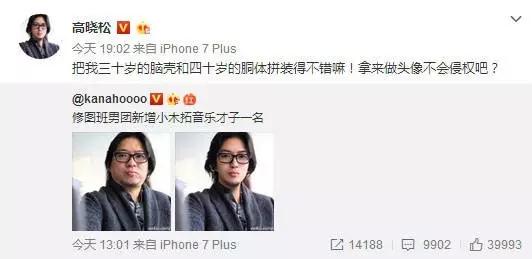 作為對亞洲妖術——美圖秀秀的反擊,國外推出一款神秘的美圖軟件FaceApp。它可以為你除皺,讓你微笑,讓你變老,給你變性。然而,你們還是圖樣圖森破,亞洲妖術是能這么輕易被打敗的么?我翻開了高曉松的微博,露出了輕蔑的笑容...