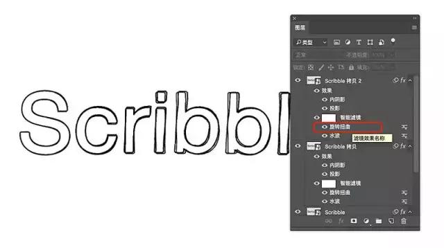 使用文本工具創建一個新的文字圖層,并輸入你的文本。我使用了Helvetica Neue Regular,并輸入了“Scribble”這個詞。 右鍵單擊文本圖層轉換將其轉換為智能對象。