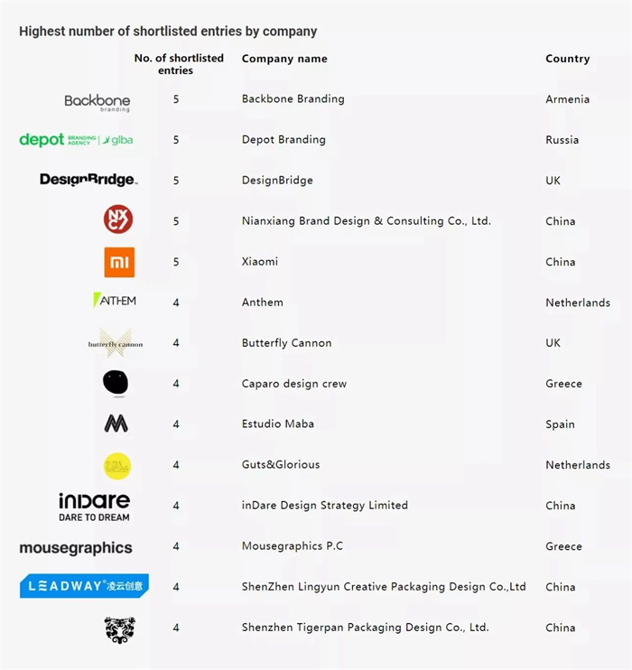 Pentawards是全球首個也是唯一的專注于各種包裝設(shè)計的競賽,素有包裝設(shè)計界奧斯卡之稱。自2007年創(chuàng)辦起,每年P(guān)entawards競賽皆會聘請12位在全球頗具盛名的設(shè)計師,以及知名公司的包裝設(shè)計總監(jiān),組成專業(yè)的評審團隊,一同評比來自世界各地的包裝設(shè)計作品。Pentawards在9月24日星期四舉行了首度的線上頒獎典禮,揭曉了本年度獲得Pentawards殊榮的獲獎?wù)摺+@得最多獎項的公司包括Backbone Branding、Design Bridge個別獲得了5個Awards,潘虎包裝設(shè)計實驗室、深圳凌云創(chuàng)意包裝、Depot Branding Agency、小米、Estudio Maba 以及 Anthem, 等公司皆獲得了4個獎項。