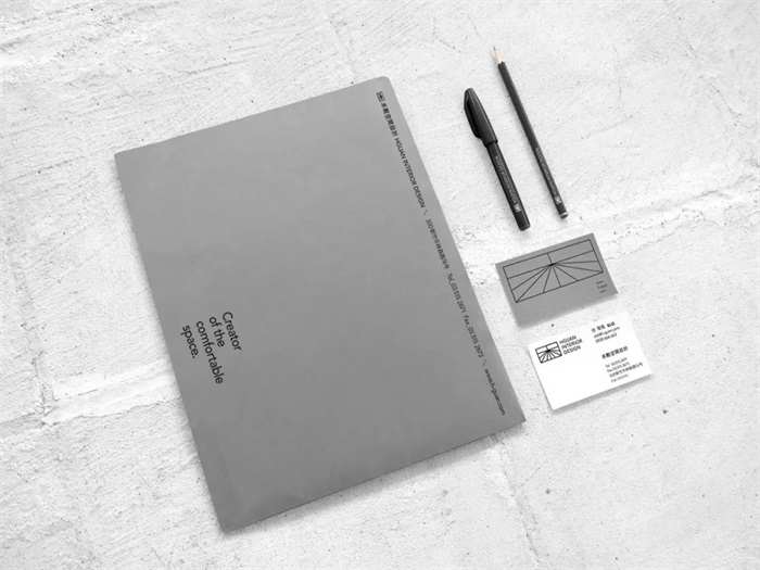 將禾觀的品牌形象呈現出”最單純的觀點”。于是想到了室內設計師使用的透視圖,利用簡單的線條呈現出宏觀、大器、視野、延伸、天地、人間、安定、寧靜氛圍的品牌識別。配色采用單色100%K表現純凈無雜質,呈現出簡約單純、高質感與對現代時尚的堅持與追求。字體使用Avenir,此字型為法語「未來」之意,象征公司具有宏觀態度放眼未來之氣勢。
