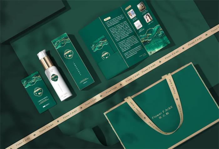 秉承“以花為船,臨水作賦”的花之船品牌,墨綠色的外盒包裝,用花與水的復(fù)合圖形搭配西子湖畔,既是對品牌主題的呼應(yīng),也傳遞了品牌獨(dú)有的情感給消費(fèi)者。整體呈現(xiàn)動(dòng)靜相稱、疏密對比的布局,品牌徽標(biāo)勾勒了西湖景色,畫面中錯(cuò)落的葫蘆塔與湖面小舟,結(jié)合金邊之外的綠海汪洋,象征著品牌抗衰的自然力量。另外徽標(biāo)輪廓上加入了幾簇水紋,而波光之中的倒影石塔點(diǎn)綴整體畫面,輕奢典雅的中式風(fēng)格設(shè)巧妙體現(xiàn)了地域特色。