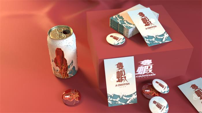 LOGO的設(shè)計模仿小龍蝦的形態(tài),選用硬朗卻又不是趣味的中國紅字體,帶著一種潮流復(fù)古感,棱角分明的細節(jié)處理如同小龍蝦的爪子堅硬突出。品牌的輔助元素運用了祥云紋,具有獨特代表性的中國文化符號寓意祥瑞之云氣,表達了吉祥、喜慶、幸福的愿望以及對生命的美好向往。祥云紋造型獨特,婉轉(zhuǎn)優(yōu)美,其美好吉祥的寓意宣傳了中國傳統(tǒng)文化,使得品牌更具生命力。采用了紅、藍、黃的標(biāo)準(zhǔn)色與輔助色,低飽和度的顏色具有傳統(tǒng)色感,仿佛取色于天空、河流、云彩。鮮艷明麗的色彩構(gòu)圖,紅與白相撞迸出火花形成鮮明的視覺效果。