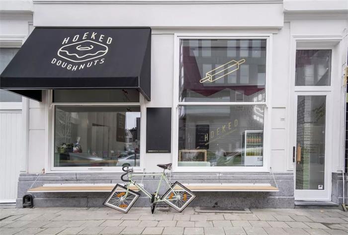 這是一家概念甜品店,由顧客根據自己的需求選擇喜歡的口味進行配制,而這種概念式的餐廳在中國才剛剛興起。這家主打甜甜圈的甜品店,由于概念店的經營模式只放置了原味烘焙的面包,由顧客進行選擇口味搭配,整體裝修較為簡單,顏色搭配上都用輕色調,給人清新、簡潔帶有一點ins風格。