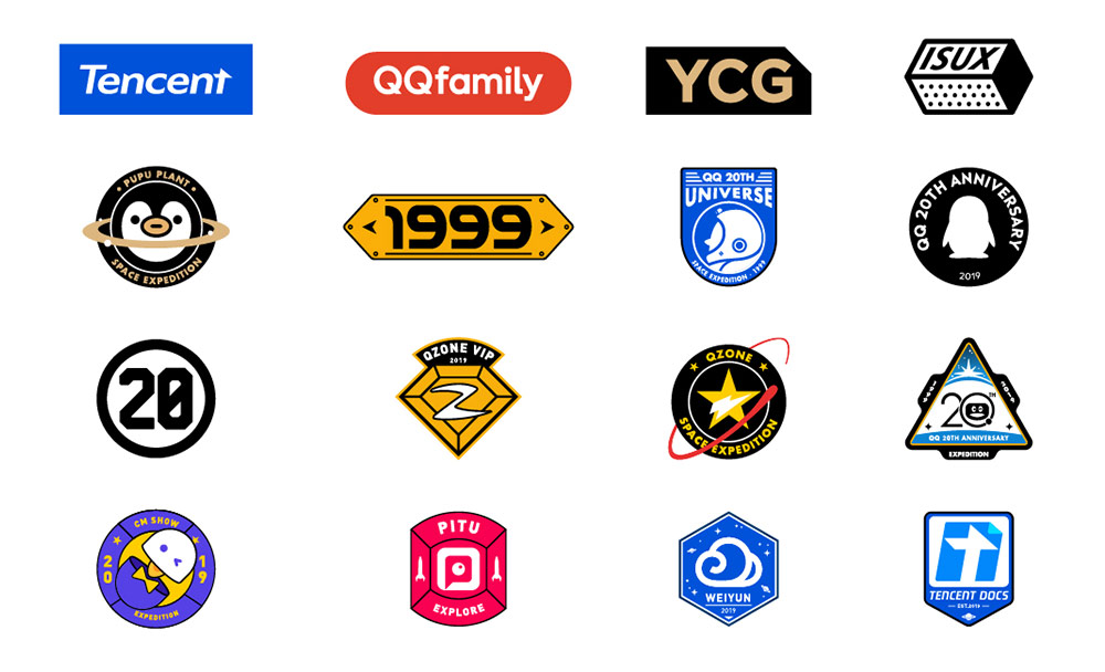 為了能夠和“宇宙探索”這風格緊密貼合,設計團隊還設計了專屬徽章,徽章設計沿用了太空的概念,結合星球,星空,宇航員等科幻元素。簡約的幾何形狀和大膽的配色貼合“QQ更好玩”的年輕潮流氣息。