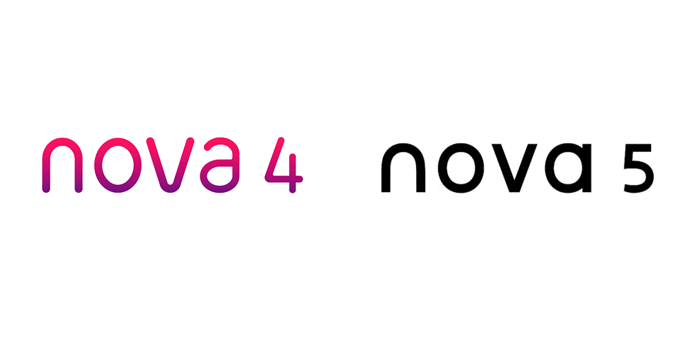 雖然兩種字體均為無(wú)襯線(xiàn)小寫(xiě)字體,很明顯,作為符號(hào)用的字體要比最后定格畫(huà)面中的nova5 字標(biāo)的字體更粗,字間距也更緊湊。特別是“o”和“a”字,兩種有很明顯的區(qū)別。不過(guò)從目前官方宣傳的相關(guān)物料中可以確定,最后定格的字標(biāo)(字體纖細(xì)的這款)將是nova5正式的LOGO。