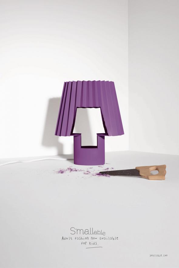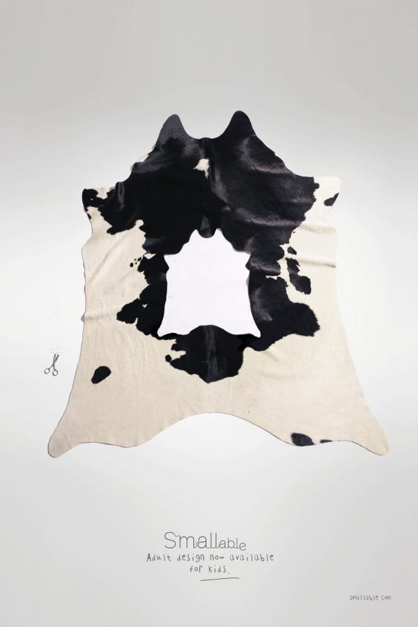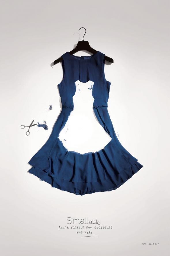 法國在線品牌Smallable,專門為孩子們提供超時尚的在線時裝及設計概念。這種直接在大人衣服上挖洞的形式,相當直觀的表現了Idea:一樣時髦,只是Size不同。另外,裁剪的碎屑隨意的散落一旁,更體現了定制、量體裁衣的核心,不可謂不精妙~ 廣告