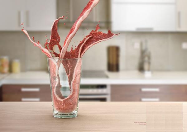夏天快到了,很多人會選擇去便利超商買飲料解渴,但因為健康因素還有省錢,自己制作冰水的朋友也不在少數(shù),但是冰箱只要稍微有異味,不管是冰水溫水冰塊,喝起來就是有點怪怪的冰箱味道,喝了不只沒有消暑的感覺,甚至還多了分惡心感。 在國外的Exito 瓶裝水,就利用了這種冰箱異味當做概念,設(shè)計出一系列驚悚的異味開水廣告海報,特別強調(diào)了他們家的瓶裝水總共有七層,不管你的冰箱異味有多濃都不會影響你喝水的品質(zhì)!淺顯易懂的概念就完整了表達了該廣告所要表現(xiàn)的意象,加上有點超現(xiàn)實的手法,輕松就吸引了眾人的目光(至少編者被吸引了XD),用看的就感覺喝到生肉水的直接感受也令人印象深刻。