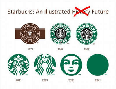 (因此,有人惡搞做出了「星巴克 logo 設計預測」美人魚圖標會變得愈來愈近。)