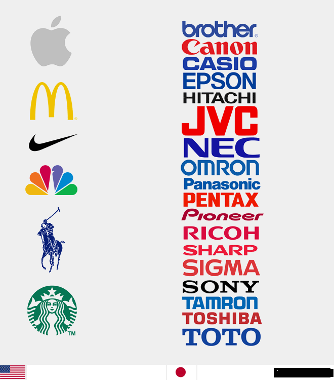 不能說這是兩個國家的品牌標識常態,諸如IBM/Philips/Fedex/Google等許多跨國品牌也將純字體標識運用到極致,而日本包括 Yonex/Ito Yokado/Hello Kitty/Mitsubishi等品牌也能純圖示人,甚至有時候我們很難準備地分辨出什么是字體什么是圖形,如Coca-Cola。今天的logo對照 僅是一時興起,但不可否認美國品牌在全世界的影響力仍獨具優勢,以Apple與nike為代表的品牌深深地滲透到世界性的流行中,標識本身的不朽功不可 沒。而日本語境中有大量的多音節或多字母品牌名,純字體也是明智選擇。