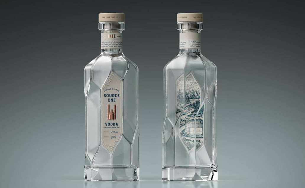 “源頭一號(hào)”釀酒廠生產(chǎn)的烈酒采用美國(guó)內(nèi)華達(dá)山脈的冰雪融水制作而成。當(dāng)?shù)厝藢⑷谒畠?chǔ)存在水井中,稱為“井水一號(hào)”,該伏特加因此得名“源頭一號(hào)”。“源頭一號(hào)”包裝設(shè)計(jì)的靈感來(lái)源于復(fù)雜的溫室建筑元素,由偏置面組成的玻璃瓶結(jié)構(gòu),在轉(zhuǎn)動(dòng)時(shí)會(huì)產(chǎn)生螺旋狀插圖,形成一個(gè)不停轉(zhuǎn)動(dòng)的幻覺(jué)。