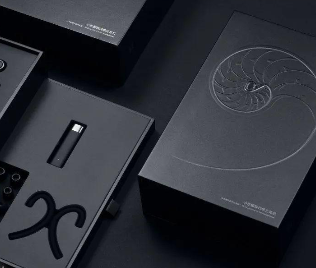小米耳機(jī)的包裝設(shè)計(jì)頗為驚艷。鸚鵡螺骨骼線以黃金比例浮雕在純黑色封面上,高雅而又神秘。耳機(jī)嵌在鸚鵡螺中心,傳達(dá)出“讓耳朵聽(tīng)到最純粹的音樂(lè)”的理念。包裝紙選擇低光澤度的銀紙,以表現(xiàn)產(chǎn)品的品質(zhì)。