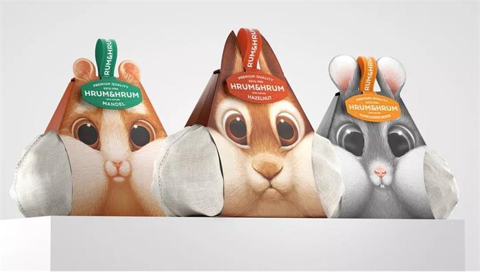 頑皮可愛(ài)的小松鼠最擅長(zhǎng)收集堅(jiān)果及種子,藏在腮內(nèi)。堅(jiān)果的好處可多了,營(yíng)養(yǎng)豐富又美味,而且天然健康。小松鼠無(wú)論在自然中還是動(dòng)畫(huà)片中都隨處可見(jiàn),通過(guò)松鼠對(duì)堅(jiān)果的喜愛(ài),以及它們?cè)谧彀屠飼捍媸澄锏奶攸c(diǎn),設(shè)計(jì)師將這一創(chuàng)意運(yùn)用到了堅(jiān)果包裝上,布袋裝滿(mǎn)堅(jiān)果就像一只嘴巴塞滿(mǎn)堅(jiān)果的小松鼠?蓯(ài)生動(dòng)有趣,具有敘事性,還突出了產(chǎn)品本身是天然無(wú)添加的零食的特點(diǎn)。既具實(shí)用性又能給消費(fèi)者帶來(lái)情感的愉悅。這款來(lái)自白俄羅斯Hrum-Hrum堅(jiān)果包裝設(shè)計(jì)在微博上爆火,網(wǎng)友直呼“太可愛(ài)了”,“不愛(ài)吃堅(jiān)果的我都想一樣來(lái)一包!”