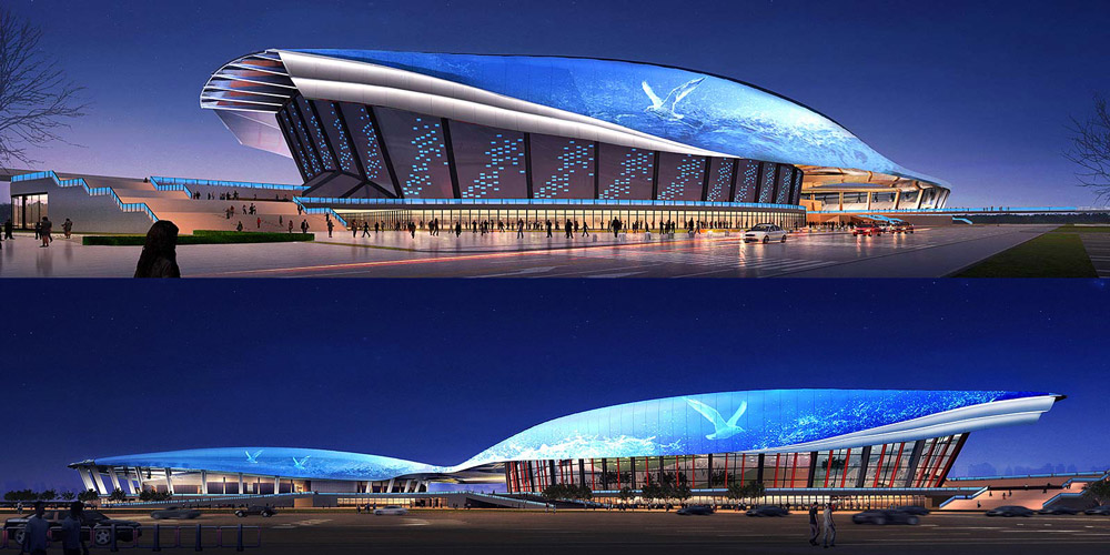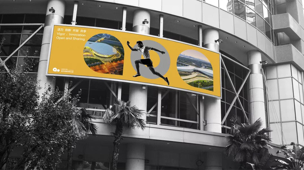 “ao”與青奧的“奧”音節相同,契合了發揚青奧品牌效應的理念,同時與青奧體育公園的建造背景相呼應。加注音調后,也可以理解為感嘆詞“噢”,體現出場館獨具特色的形象氛圍,以及觀眾對場館的驚嘆感受。同時,根據不同的場合和環境,對LOGO原造型的顏色和圖案進行藝術處理,形成獨有特色的造型“語言”圖案,使之更加生動。