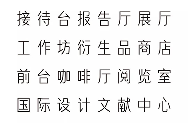 中文字體筆畫等線、切腳、幾何化曲線等特征與西文匹配,字面寬度則取自字母「N」的字寬,進行等幅設計。字形高闊、明朗,重心平穩,在與富于節奏變化的西文組版中求以安靜,滿足觀眾獲取流暢的信息。