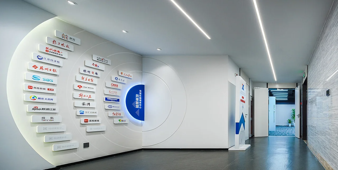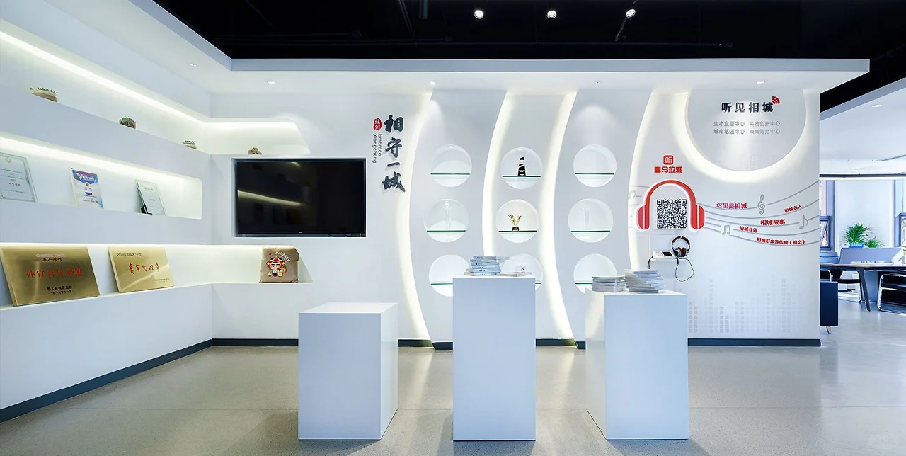文化墻不應是孤立的墻面裝飾,而應與展廳整體空間形成互動。可結合墻面的結構特點,設計 “嵌入式” 或 “延伸式” 造型,讓文化墻成為空間的有機組成部分。