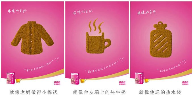 愛國之情、民族之情、社會之情、公益情感都是集體情感,廣告創意與實事的結合,不僅能夠引起注意,還能夠借機宣傳,起到更好的效果,比如奧運等社會事件;還可以運用民族元素、符號、特征等,不僅能夠增加親切感、拉近與用戶的距離,還能借助用戶熟悉的元素符號增強其對品牌的識別度。