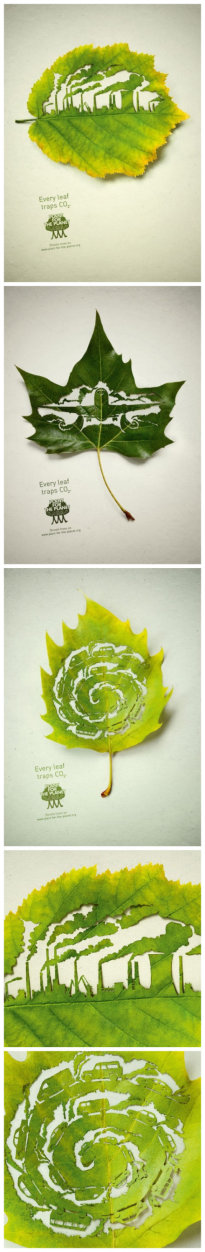 此平面創(chuàng)意廣告主題:每個葉子都吸收二氧化碳。