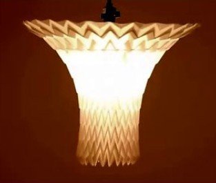 日本BAKOKO 工作室參加米蘭雙年展的作品,折紙燈,將一張紙通過參數化工具進行設計,加工,最后人工簡單的折疊方式變成既美觀又實用的燈罩。