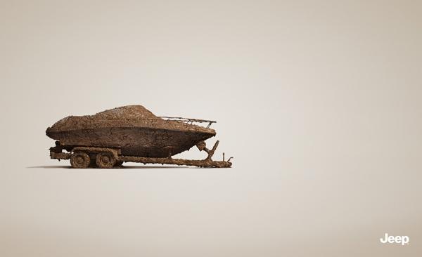 初看來不知所云,這是Jeep的廣告?Jeep還產拖車了?還是這樣一個不修邊幅渾身泥漿的模樣?