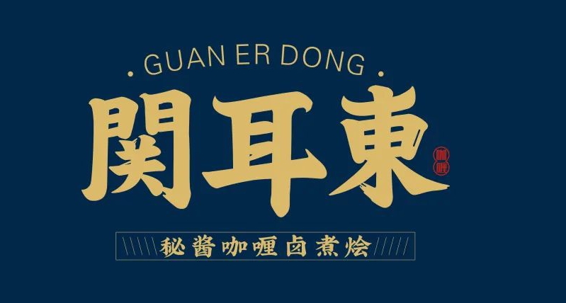 関耳東是一家從事餐飲咖喱牛雜店,而咖喱的種類很多,以國家來分,源地就有印度、斯里蘭卡、泰國、新加坡、馬來西亞等,以顏色來分,有棕、紅、青、黃、白、之別,根據配料細節上的不同來區分種類口味的咖喱大約有十多種之多,這些迥異不同的香料的匯集在一起,就能夠構成各種咖喱的各種令人意想不到的濃郁香味。VI設計的靈感來自于咖喱文化核心元素,從而提取出金箔重疊的字體設計。
