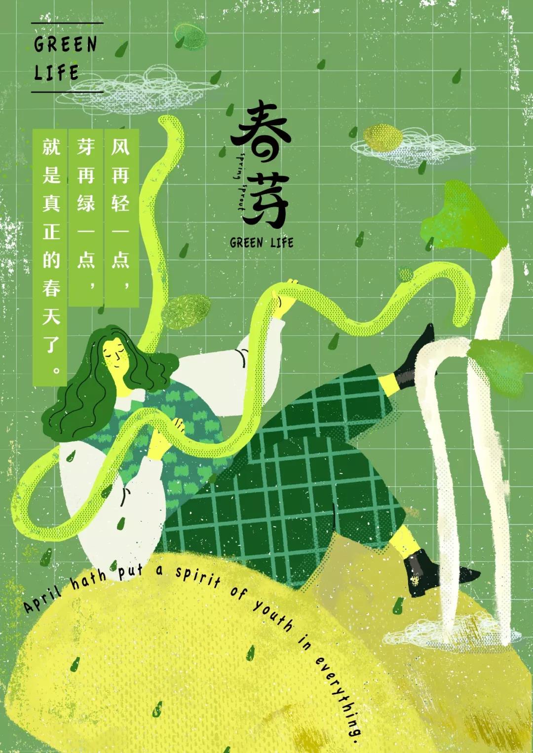 春芽品牌。品牌以充滿春天氣息的綠色為主色調(diào),放眼過(guò)去是給人以舒服的感覺(jué)。黑色的豎型排版LOGO,使得畫面簡(jiǎn)約而整潔。