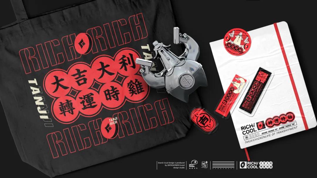 品牌的物料設計中,通過“大吉大利“”運轉時雞“”暴富”等詞語,將這些美好愿景傳遞給消費者。
