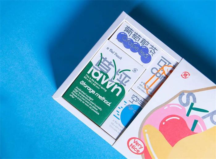 內盒獨立包裝則根據產品性質確定盒型大小,并以簡單直觀的幾何線條描繪產品特性,圖文交疊的形式使得畫面更為俏皮靈動。