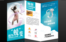 單張折頁設計雖然只有一張紙,但卻具有很強的沖擊力,隨著我們打開折頁,里面的內容一一來到你 的面前。只用一張紙設計成的折頁單張,不但成本低廉,而且漂亮吸引。通過對各個折疊區域的精心分布,使整個設計就象在跟讀者講一個有趣的故事,而其中圖片、文字的版面安排至關重要,雖然只有一張紙,卻讓你有不斷深入閱讀下去的樂趣。